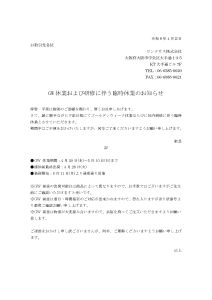 ●GW 休業期間: 4月29日(水) ~ 5月10日(日)まで